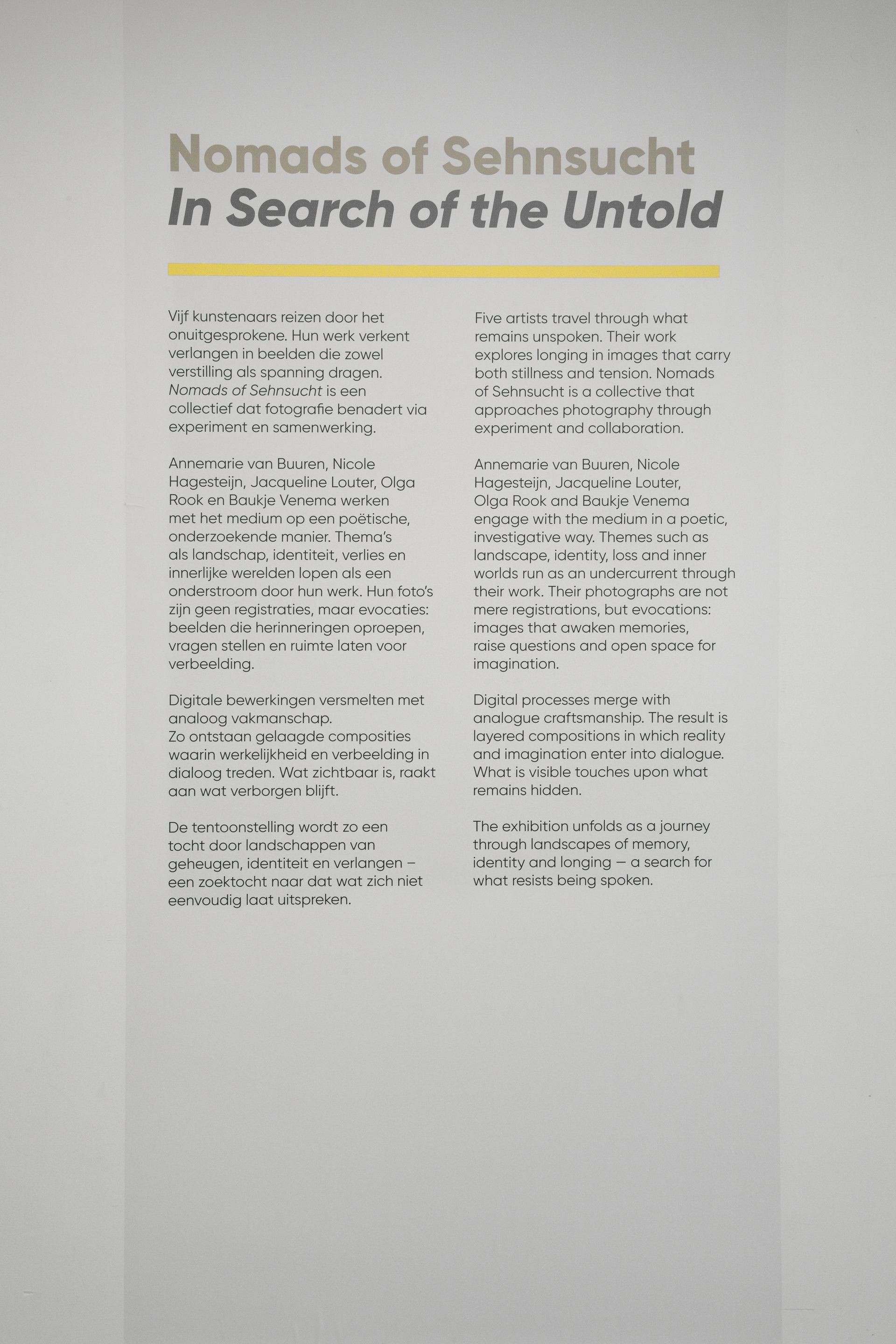 Fotografencollectief Nomads of Sehnsucht, waar ik deel van uitmaak, is uitgenodigd door CAMPIS, podium voor hedendaagse kunst in Assen, voor een expositie onder curatorschap van Regina Broersma. Als collectief omarmen we onze nomadische aard door exposities op uiteenlopende, wisselende locaties. We zijn trots in de prachtige ruimte van CAMPIS, onder de titel In Search of the Untold, ons werk te kunnen presenteren.